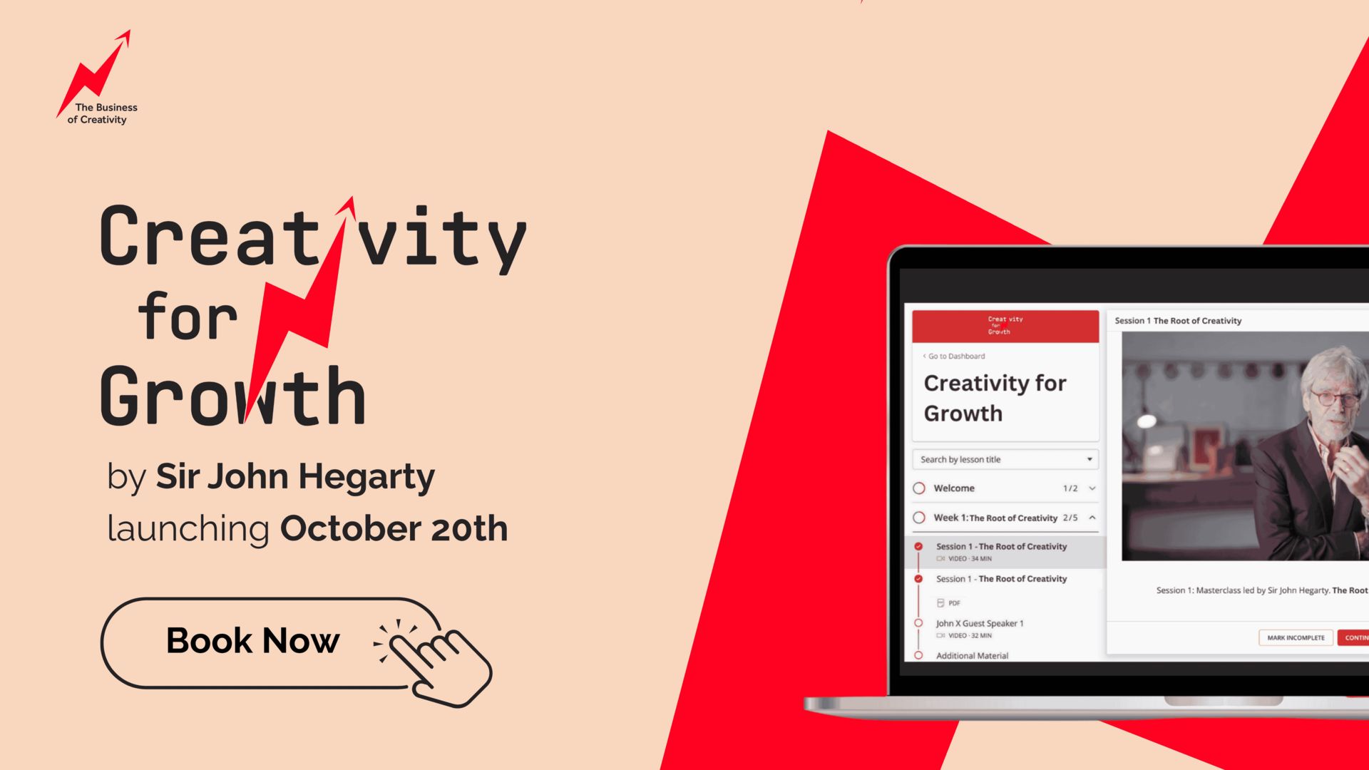 Join us for the next launch of Creativity for Growth – an eight-part course led by Sir John Hegarty that explores how creativity drives business, builds brands, and fuels growth.